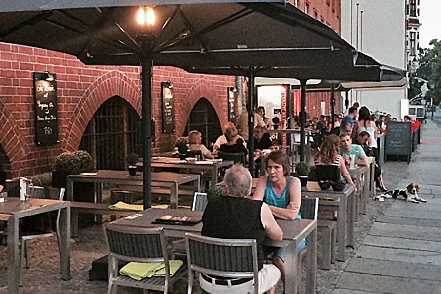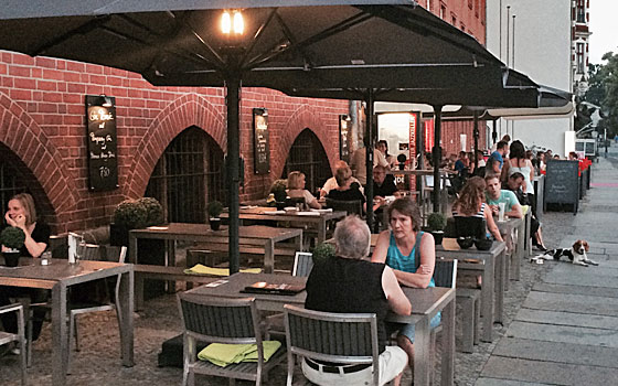 Our two street terraces can not be more different: For "Fine Dining" invites our terrace "Dahme" and "Beer & Wine" meet on the stylish terrace "Spree". Overlooking the Luisenhain you can watch the boat traffic on the Dahme and strolling in the park . Vis à vis experience on summer evenings the setting of the sun on Berlin's horizon.